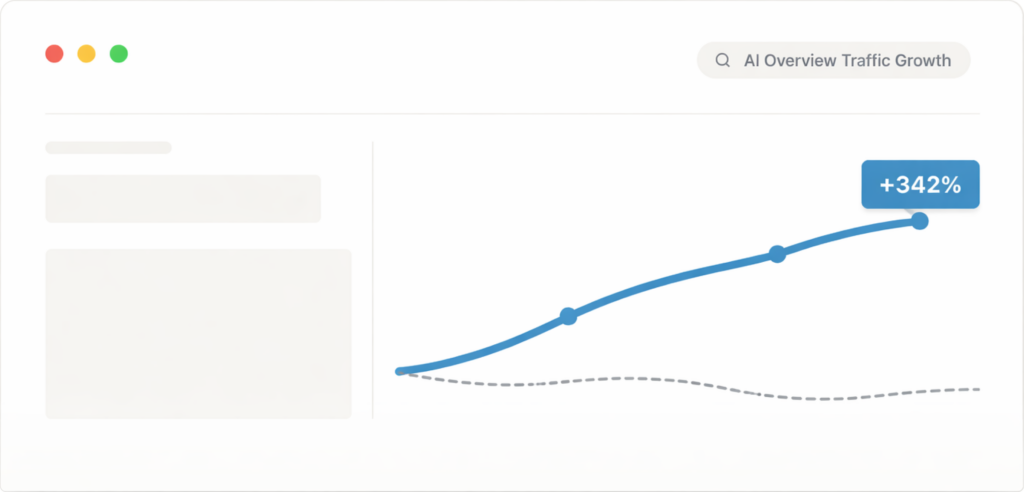 Google’s market share has dipped below 90% for the first time in a decade. With AI Overviews, users aren’t clicking links anymore — they’re reading summaries. If your brand isn’t the source of that summary, you’re invisible.